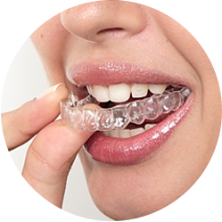 You may insert either the upper or lower aligner first. When inserting each aligner, gently push the aligners over your front teeth. Then, apply equal pressure, using your fingertips, to the tops of your left and right molars (Back Teeth) until the aligner snaps into place.
